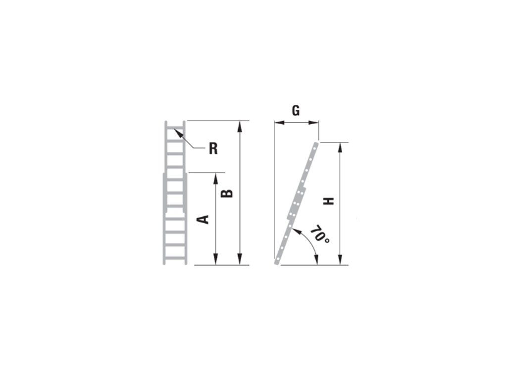 Dvojdielny výsuvný rebrík Forte, počet priečok 2 × 8 až 2 × 20, v dĺžkach od 3,83 do 10,62 m a šírke 412 mm.