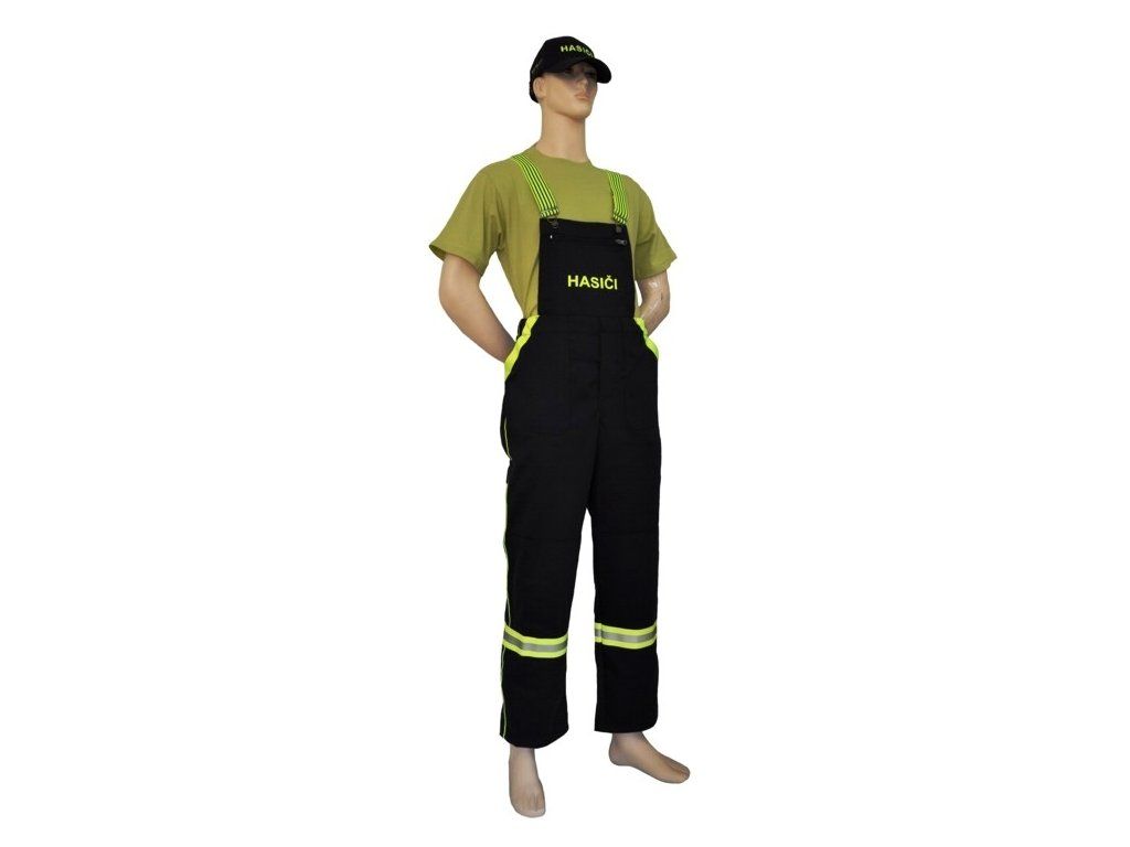 - Pohodlný strih nohavíc s polohovateľnými fluo trakmi s nápisom HASIČI