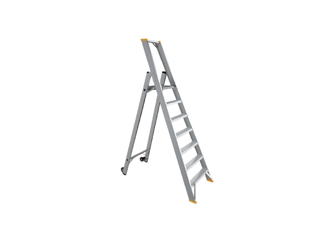 Jednostranné schodíky Forte, počet nášľapov vrátane plošinky 1 × 3 až 1 × 10, rozmery plošinky 305 × 290 mm, max. výška plošinky 0,64 až 2,12 m a s maximálnou šírkou schodkov od 474 do 666 mm. * – štandardne s kolieskami