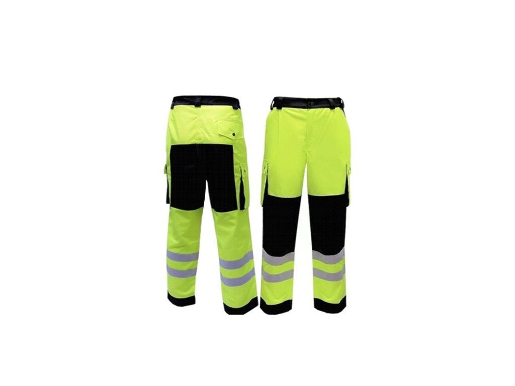– farba fluo-žltá v kombinácii s čiernou– extra výstuže zadok a kolená– RETROX® strieborné reflexné pásy š.5cm– reflexná strieborná švová výpustka nad kolenami– klasický pohodlný strih nohavíc do pása, v bokoch prešívaná guma– zapínanie na zips a gombíky– v páse pútka na opasok a 6ks gombíkov na traky