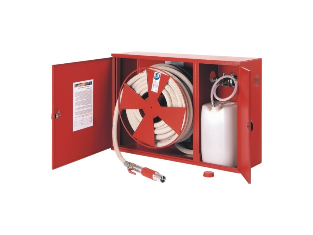 Nástenný hydrant penotvorný s tvarovo stálou hadicou D25 – 30 bm, plné dvierka a ľavé prevedenie je certifikovaný protipožiarny systém určený na vnútorné použitie podľa normy EN 671-1.
