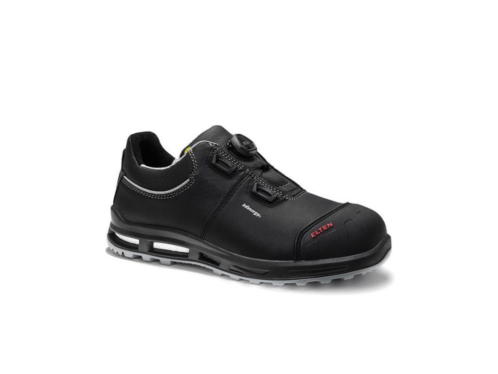 Nadčasová klasika s najnovším vybavením! REACTION XXT Pro BOA® Low ESD S3 zo série WELLMAXX od ELTEN ponúka kompletný balík. Jednoduchá bezpečnostná topánka S3 vďaka systému BOA® Fit System rýchlo a presne sedí na nohe – zaväzovanie dlhých šnúrok je minulosťou. Zvršok z hovädzej kože a TPU ochrana špičky zároveň zaisťujú odolnosť. Plastová čiapočka, bezkovová ochrana proti prieniku a pripevnený reflexný materiál ponúkajú ochranu pred vonkajšími rizikami. Vo vnútri je priedušná textilná podšívka pohodlná na nosenie. Podrážka WELLMAXX TRAINERS s jadrom podrážky z materiálu Infinergy® od BASF robí pohodlie pri nosení kompletnou vecou: High-tech materiál vracia chodidlám veľkú časť energie vynaloženej pri behu – chodidlá a kĺby zostanú dlhšie fit.