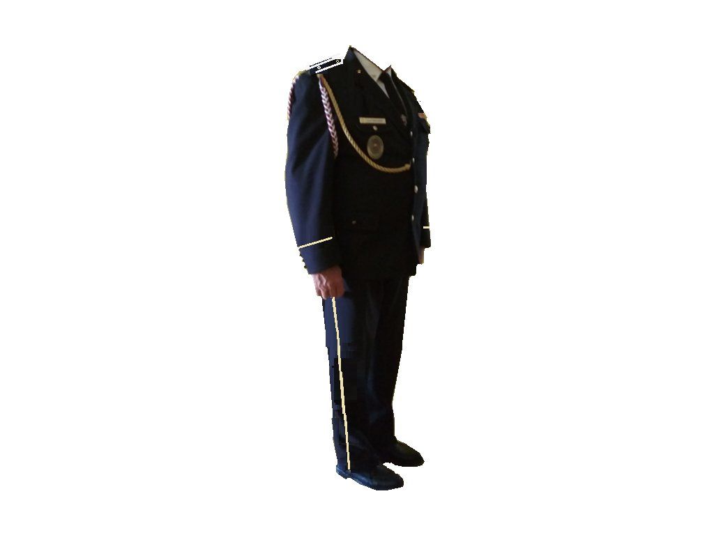 Pánska rovnošata je vyrobená z nekrčivého materiálu. Na saku sa nachádza jednoradové zapínanie s ozdobnými zlatými gombíkmi. Rukávy a nohavice sú prešívane zlatým lemovaním. Rovnošata je dodávaná bez audienčných šnúr, menovky a ostatných doplnkov. Všetky doplnky, menovka a audienčné šnúry je možné si doobjednať
